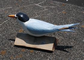 これは、デコイです。コアジサシが上空で見て、卵を温めているようと思うように、2羽毎に配置されているそうです。