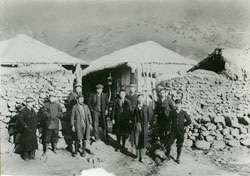 明治37(1904)年1月、精一は初めて朝鮮半島を訪れる。増若は、京城の南、大田(*13)の西にある地域で、当時鹿島は鉄道が開通していた芙江(*14)に出張所を置いていたが、増若はそこから馬で2泊3日もかかる不便な山中にあり、民家を借宿舎としていた。松吉は、交渉事の時は、短刀を忍ばせて事に当たったという。宿舎の部屋の中には縦4畳ほどのオンドルがあり、4,5人が雑居していた。南京虫が出る、オンドルの過熱で衣服を焦がすなどの住環境で、満足な食事もとれない中での工事であった。精一がこの地を訪れた時の写真に神林松吉が写っていることから、事務系の彼もここにいたらしい。