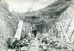 増若隧道は、延長262m。3本のトンネルを掘削するものだが、この地特有の頑強な岩盤に苦しめられる。100馬力のコンプレッサー2台を据え付け、削岩機を使用しても一日平均1.5mしか進まず、一日300人の作業員を使って全面掘鑿法により施工。このときの鹿島組の下で施工にあたった伊沢という業者は、後に丹那トンネルでも鹿島組の下、着工から竣工まで工事に当たった。