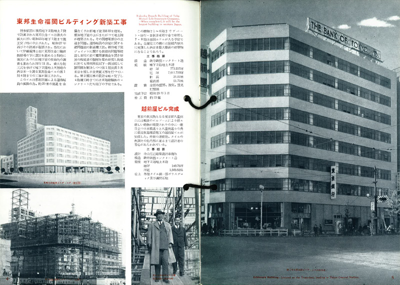 東京駅八重洲口の正面に伸びる八重洲通と中央通との交差点に「越前屋ビル」がある。鹿島東京建築支店の営業担当者が、このビルの施工当時のアルバムを借りて来た。そこには、戦後復興に立ち向かい、新たな時代を切り広げようとする息吹が感じられた。
