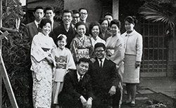 昭和40(1965)年正月主計課員たちと。(後列着物姿染谷)クリックすると拡大します