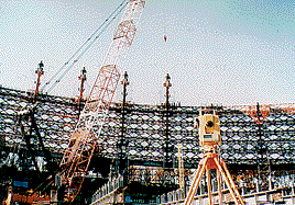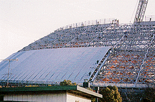 1回目のシーズンオフに 観客席の上にドーナツ型の屋根を 地鎮祭が行われた1997年7月7日は、まだプロ野球シーズン真っ盛りであった。シーズン中は、わずかな間隙をぬって工事を進めざるをえなかった。野球の試合や催物がある時であっても、閉門してから、開門するまでの時間を最大限に利用してきた。こうした条件の下で、屋根を支える杭基礎を少しずつ施工した。 昨シーズンのプロ野球パ・リーグは、10月12日に全日程を終了した。しかし、西武ライオンズは既にリーグ優勝を決めており、日本シリーズでプロ野球日本一を競うことになっていた。結局、本格的な作業は27日から、1999年2月末の完成を目指して始まった。
