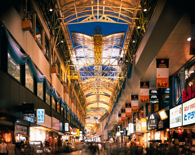 震災で壊滅的な被害を受けたアーケードを280mにわたり架け直した。