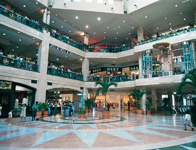 駅施設,店舗,ホテルそれぞれの施設を回遊しやすいように巨大な吹き抜けを持つコンコースで結び,活気あふれる空間と雰囲気を創出している(1998年竣工)