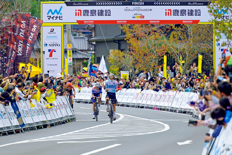 九州を舞台に初めて開催された自転車の国際ロードレース「マイナビ ツール・ド・九州2023」が,10月6~9日に行われました。国内外合計18チームからエントリーした108名の選手が,福岡,熊本,大分各県の大自然や市街地,観光スポットなど全走行距離約426kmを駆け抜けました。大会コンセプトは「九州の復興」。近年九州を襲ったいくつもの自然災害からの復興を象徴するイベントで,当社はプラチナスポンサーとして協賛させていただきました。