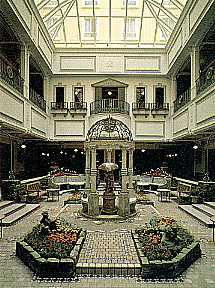 特集:ホテル建築 都会でもてなす 都市に建つホテル建築では、街との連続と遮断を意図的に使い分けていくことが、もてなしの空間を充実させることとなる。たとえば、長崎や神戸など街そのものが独自の個性を持っている場合、その雰囲気を損なわないようにうまく建物の内部に人を迎え入れる工夫が必要である。また、コンクリートで囲まれ、無機的な都会の冷たさを和らげる、緑豊かな空間づくりなどもその一つである。 |