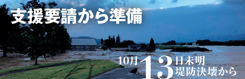 日建連北陸支部は,13日未明決壊が発生した数時間後の午前8時に,北陸地方整備局から災害協定に基づく支援要請の連絡を受け,8時30分「緊急災害対策本部」を開設した。