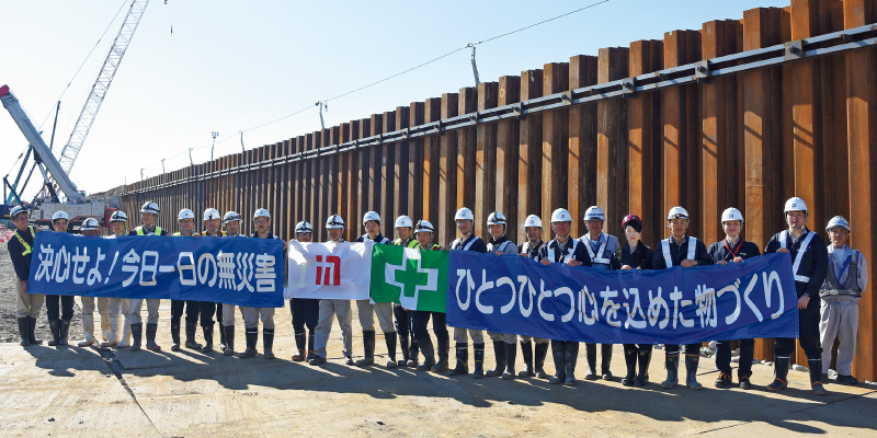 発災から2週間,鋼矢板仮締切堤防の当社工区の施工は,無事故無災害で予定の工期どおり完了した。