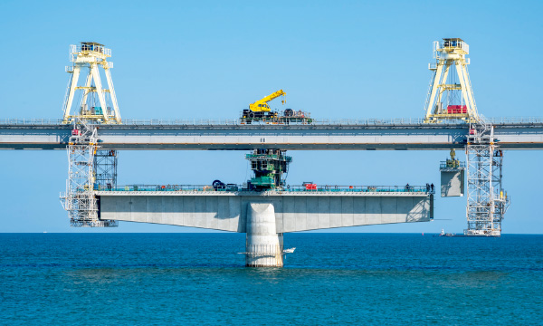 着工から6年目を迎えようとしている2021年1月現在,全体の約58%のセグメント架設が完了。さらなる工程短縮を目指して,2020年12月から昼夜兼行による施工に体制が増強された。現場社員の英知を結集した長大橋完成までの道のりがようやく見え始めた。