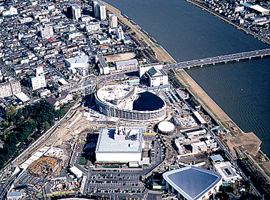 上越新幹線で新潟到着のアナウンスが聞こえてくる頃、車窓にモスラの卵のような建物が見える。これがいま当社が施工中の