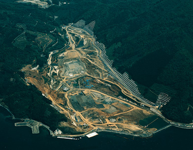 関西電力舞鶴発電所の現場は,若狭湾国定公園内,舞鶴の半島先端部に位置する。このため景観を含めた周辺環境に十分配慮し,敷地造成・法面補強工事を推進中である。人工衛星によるGPS測量と深浅測量・沈下解析を組み合わせた新しい土量管理システム等最先端技術の導入や法面補強のため多段式圧縮型スーパーMCアンカーの本格採用等積極的にはかっている。 |