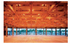沖縄プレスセンター わが国の産業廃棄物の約2割を排出している建設業――。2000年7月に九州・沖縄で開催されたサミットで各国報道関係者の拠点となった「プレスセンター」は,廃棄物の削減とリサイクルをテーマとした建設プロジェクトであった。当施設は,開催後に解体されることが当初から決まっており,設計段階から資機材の再利用が考えられた。そして基準風速46mにも耐えられる構造でありながら,仮設建築物として各部材は取り外しが容易にできるよう建設された。解体の際には,外壁の板は学校の教材や災害時に利用される矢板に,屋根のトラス材は公共施設の資材として再利用され,その他多くの資機材がリサイクルされた。 |
