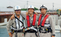 左から内田拓史工事係,亀田卓志工事係,切島弘貴工事係