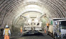 4週8閉所という全社的な目標に向けて管理部門,現業部門が知恵を出し合うなか,北海道新冠(にいかっぷ)郡新冠町の「日高自動車道新冠町大狩部(おおかりべ)トンネル工事」では,すでに意欲的な取組みで成果を見せ始めている。生産性向上と柔軟な工程管理で,すでに4週6閉所と同等の閉所実績を実現している。