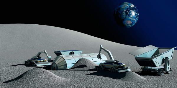 A4CSELで培った自動化技術は,宇宙開発の分野でも活用されようと研究が進んでいる。将来,月や火星に長期滞在型の有人拠点を建設するための方法として,地球上から遠隔で建設機械を操作する無人化施工が想定されている。しかしながら,遥かに離れた場所への通信は大きな遅延が発生し,遠隔操作による作業は効率や精度の面で課題が指摘されている。
