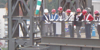 「実際の解体に際しては,新技術として注目されることを想定し,当社のアピールも考慮し,当初から現場見学会開催を前提としました」。過去の大規模工事現場の見学対応から2,000人規模を想定。技術研究所の見学ツアーを参考に現場スタッフで対応するなど万全の体制を敷いた。 約5ヵ月間の開催期間中の見学者数は3,863名。当初想定のおよそ2倍に上った。見学回数336回は1日3回以上の頻度で実施したことになる。「マスコミなどで取り上げられることも多く,建築工事以上に建設業のイメージを一新しました。いまも社外の人から解体工事の話題で好意的に話を聞かれます」と,情報開示作戦の結果に満足している。 「解体工事でこれほどの注目を集めた現場はありません。この経験をこれからの情報発信に活かしたいですね」。 |
