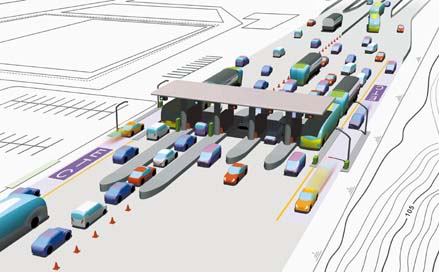 ITS道路計画支援システム「Rest=Realistic Evaluation System of Transportation」は,車の流れをコンピュータ上で再現するシミュレーションシステムである。車の長さ,幅や速度などのデータに基づき,料金所や合流地点での車の流れを実挙動に近い動画で再現して,交通渋滞が起き易い場所などを予測する。本システムは,ETC対応型インターチェンジやランプ,サービスエリアやパーキングエリア,駅前広場などの計画に威力を発揮する。これにより,従来のシステムでは困難だった図面や地図上での交通現象の評価や車の交錯現象の再現が可能になった。