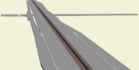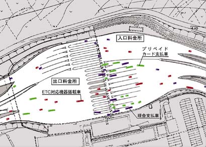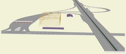 ETC対応のインターチェンジ(変形ダイヤモンド型) 従来の敷地に比べ3分の1程度の用地で建設可能