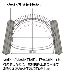 地上に人々が暮らし,地下には埋設物が複雑に交差する都市でNATMによってトンネルを築くためには,周辺への影響を最小限とするために,様々な補助工法が用いられる。先受け工法は,鋼管と注入材によって前方の地盤を先行補強して,トンネルの天端と切羽を安定させるものだ。長い鋼管を用いるタイプに比較して,さらに経済的で作業効率のよい中尺鋼管タイプ「MGF(Multi Ground Forepiling)工法」が開発され,施工実績も増えている。 トンネルの脚部には荷重が集中するため,都市部の十分に固まっていない地盤の場合,この部分が沈下して周辺への影響が大きくなる恐れがある。このため,脚部の地盤を改良する目的で,地盤の状態やトンネルの形状・土被り厚などの施工条件に応じ,最適な改良工が適用される。 茨城県水戸市に昨年竣工した「梅香トンネル」は土被りが6〜11mと浅く,また直上に地下埋設物や中高層の建築物が多数存在するという厳しい施工条件であった。このため掘削に先立って,トンネル本体の両側に,地上から直径2mの改良体の地中柱を1.7mのピッチで連続して構築し,周辺への影響を極力抑えることができた。 切羽前方の脚部をトンネル内部から効率的に改良できる工法が「曲がりオーガー大口径脚部補強杭工法」(BAF工法:Bended Auger Foot-Pile Method)だ。この工法では,屈曲しながら地中を削孔できるオーガーによって,地盤を乱すことなく脚部補強のための地中杭を構築することができる。 トンネル掘削による周辺への影響を精度よく予測するために,様々な解析技術が開発されている。従来は断面単位でしか表示できなかった地盤挙動をトンネル周辺部も含めて三次元で表示できる「三次元表示システム」は,重要構造物と地盤挙動の関係が一目瞭然となり,特に都市部での設計・施工管理に威力を発揮する。また,地盤挙動の把握,問題点の抽出,適切な対応策の迅速な決定といった施工管理支援が,様々な解析ツールや計測管理システムなどの組み合わせで行われている。 |
