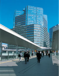 1999年,大崎駅東口に2棟の超高層オフィスタワーを中心とした巨大複合都市「ゲートシティ大崎」が誕生し,本格的な大規模再開発が始まった。 その後,大崎駅にりんかい線とJR埼京線,新宿湘南ラインが乗り入れるなど,交通の利便性が向上し,再開発は一気に加速した。 2002年,大崎駅周辺の約60haが都市再生特別措置法に基づく「都市再生緊急整備地域」に指定され,これを受けて品川区は地元企業,再開発組合関係者などで「まちづくり連絡会」を設立。2004年に同連絡会が「大崎駅周辺地域都市再生ビジョン」を策定して,官民協働の都市づくりが始まった。 現在は,大崎を中心とした城南エリアに大規模開発が波及している。機能性だけでなく,環境に配慮した街づくりがコンセプトで,目黒川を利用した潤いのある街並みを目指す。 当社は,「ゲートシティ大崎」に携わったほか,大崎駅の南口駅舎,駅とゲートシティ大崎を結ぶ東西自由通路の施工(2004年1月竣工)を担当している。 |