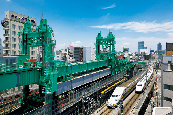 作業時間が新幹線や隣接する在来線の終電から始発までの時間と空間が限られた厳しい条件の中,完成させた工事は首都圏の交通ネットワーク向上に寄与した。