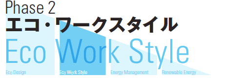 オフィスである以上,知的生産性を高める環境であることは最優先課題。省エネ建築であっても,労働意欲を低下させるような空間であっては意味がない。ワークスタイルを見直し,意識改革を図り,オフィスのあり方を再構築していく中で,快適環境と省エネを実現させようというのが,「エコ・ワークスタイル」の取組みだ。