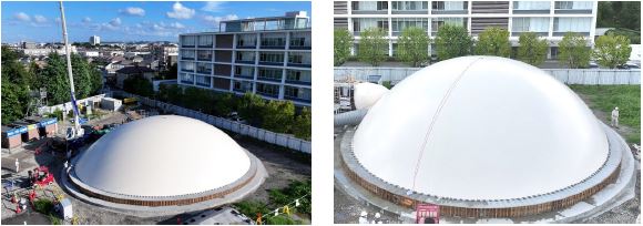 なお、両コンクリートの吹付けによるドームの建設と、CUCO-SUICOMショットの建物躯体部分への適用は世界初となります。
