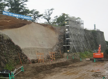 - 東日本大震災で崩落した石垣10か所と修復が必要な4か所を合わせ14か所の石垣復旧工事