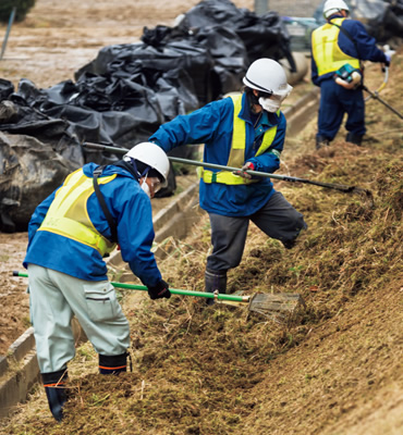 福島第一原子力発電所の事故による除染について、鹿島はモデル実証事業に参画し、田村市、富岡町、葛尾村で高線量地域における安全かつ、効率的な除染方法の実証試験を行いました。その後、田村市の本格除染工事を引き続き行いました。田村市は旧・警戒区域で初となる本格除染となりましたが、山手線の内側とほぼ同じ面積の除染工事を無事完了しました。