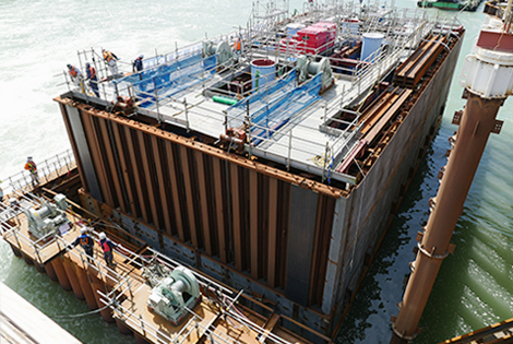 引込みが完了した1基目の鋼殻ケーソン