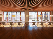 狭小敷地を最大限活かした積層型のスリムな校舎であるが、足元の往来や都心ならではの眺望を取り込み、街そのものをキャンパスと見立てることで、広がりある豊かな教育の場を形成している。